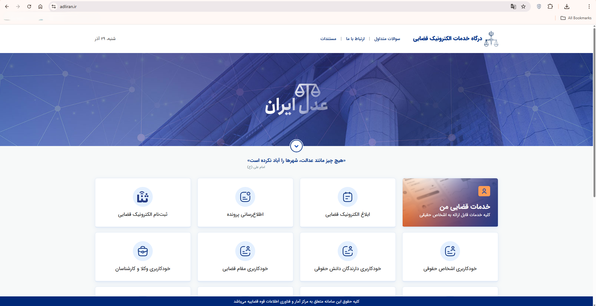 مرحله اول: ورود به سامانه خدمات الکترونیک قضایی