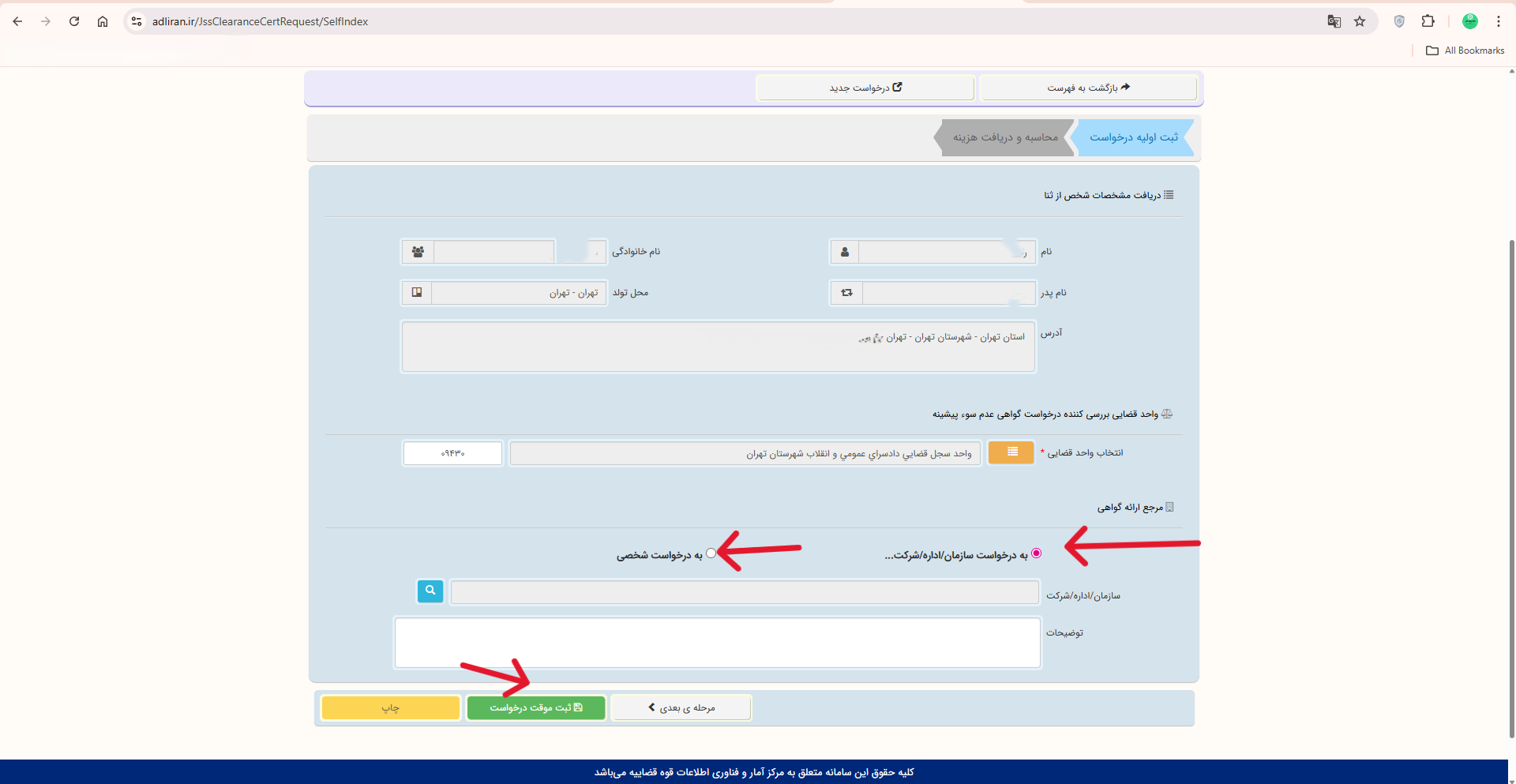 مرحله سوم: ثبت درخواست گواهی عدم سوءپیشینه
