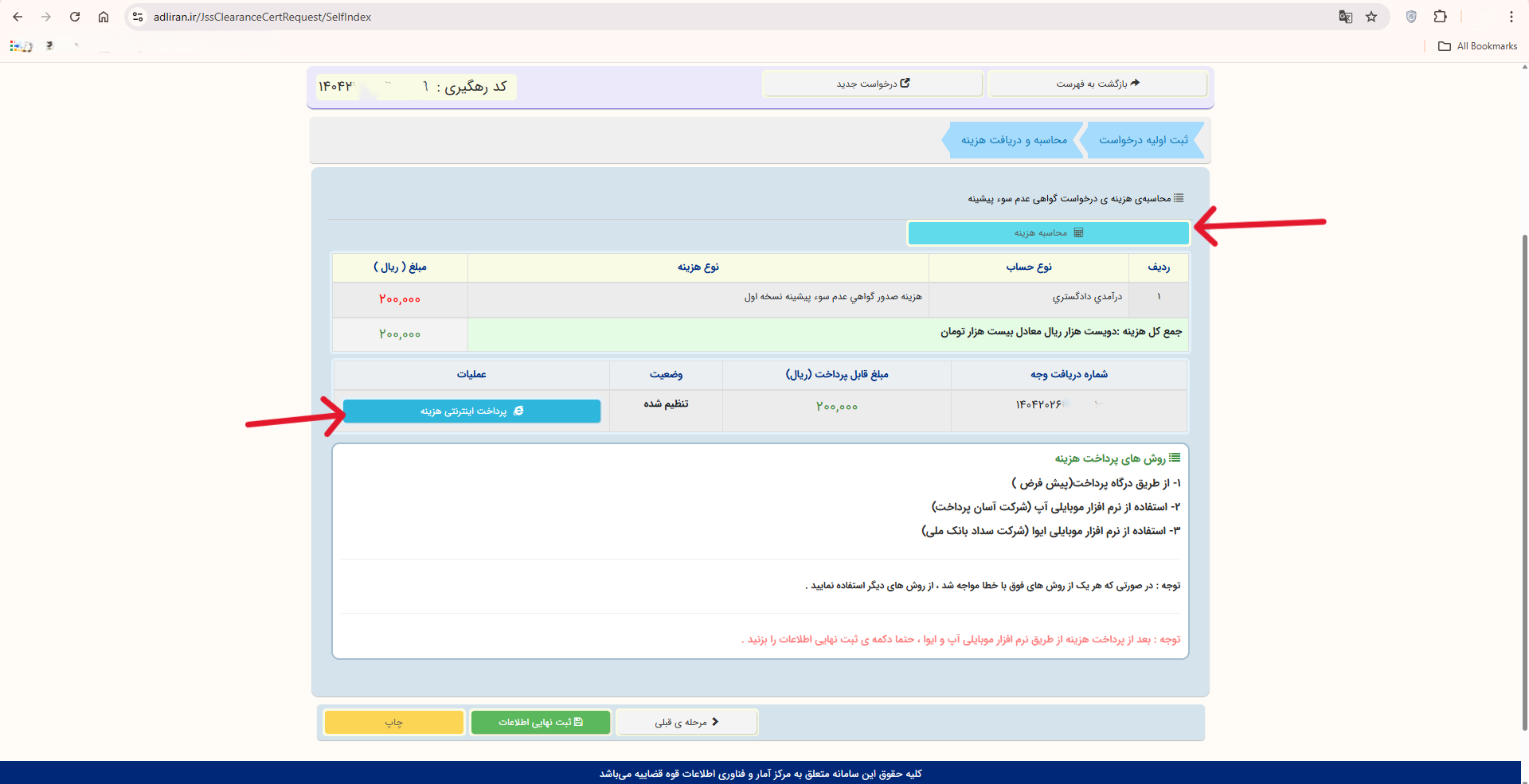 - پس از پرداخت هزینه، درخواست شما ثبت و قابل پیگیری خواهد بود.